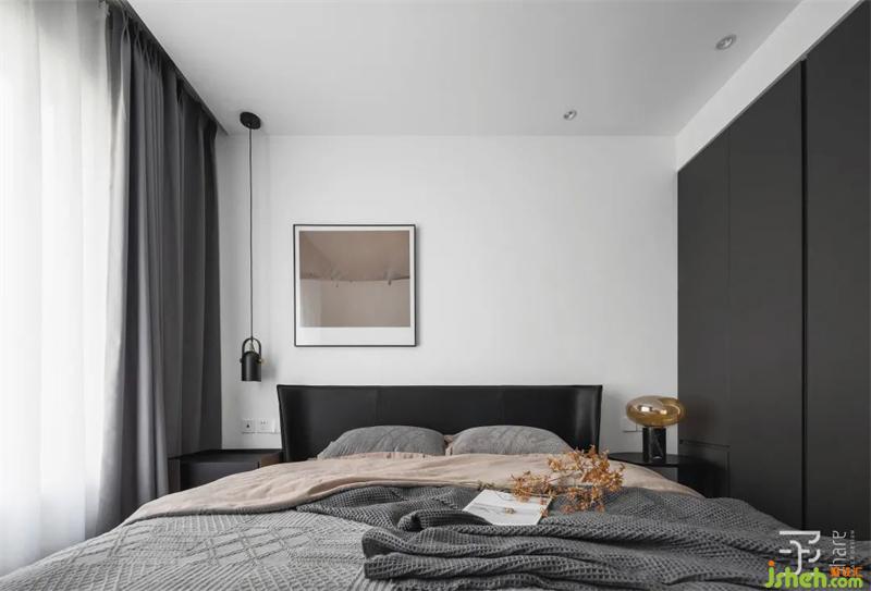 沉穩(wěn)寧?kù)o的氣質(zhì)同樣延貫到了睡眠區(qū)。主臥空間采用極簡(jiǎn)的家具,成都裝修設(shè)計(jì)搭配輕盈的裝飾吊燈、簡(jiǎn)潔的深黑皮質(zhì)床,加上暖調(diào)的飾品與灰色的窗簾讓空間達(dá)到一種恰到好處的平衡。色彩上一素一暖,延續(xù)整體空間色調(diào)的基礎(chǔ)上,構(gòu)建一種安定隨心的生活方式。在微妙的光影重疊下,白色紗幔隨風(fēng)飄然而起,臥枕而息,讓人沉浸于此做一場(chǎng)美夢(mèng)。
