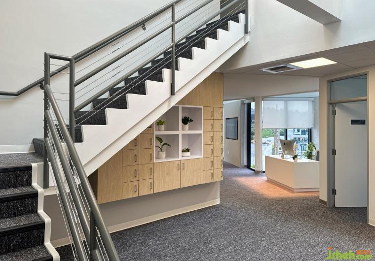 The staircase is not merely a passage connecting the two levels; we have thoughtfully integrated a printing area and a towering wooden bookshelf beside it, adding both functionality and aesthetic value to what is typically a mundane space. The light wood tones harmonize seamlessly with the surrounding gray and white environment, creating a cohesive and unified visual effect that enhances the overall sense of the space. These carefully crafted design details transform the corridor from a simple passageway into a "transitional space" linking various functional areas. Through a rhythmic design language, the entire office space is seamlessly connected, imparting greater spatial depth and a dynamic sense of rhythm.