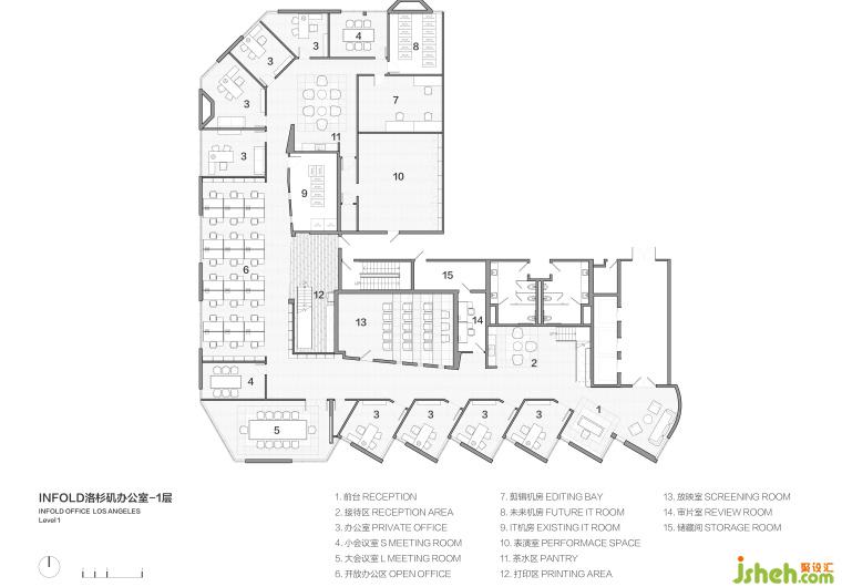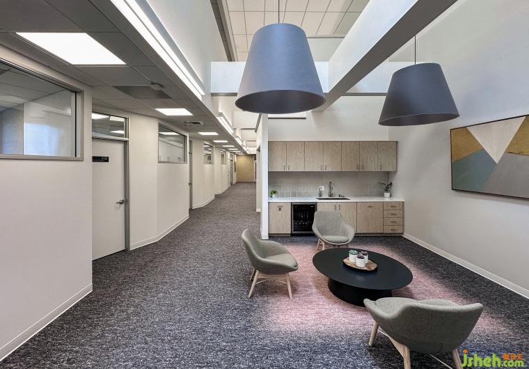 在INFOLD洛杉磯的辦公空間設(shè)計(jì)中,辦公空間設(shè)計(jì)通過獨(dú)特的布局和材質(zhì)的巧妙搭配,使整個(gè)辦公環(huán)境超越了傳統(tǒng)辦公空間的界限,不僅滿足功能需求,還在氛圍上營(yíng)造出令人舒適的體驗(yàn)。前臺(tái)區(qū)域的嚴(yán)謹(jǐn)與溫馨、走廊的節(jié)奏感、茶水間的明亮與活力,逐步構(gòu)建出一個(gè)富有層次感的空間。
