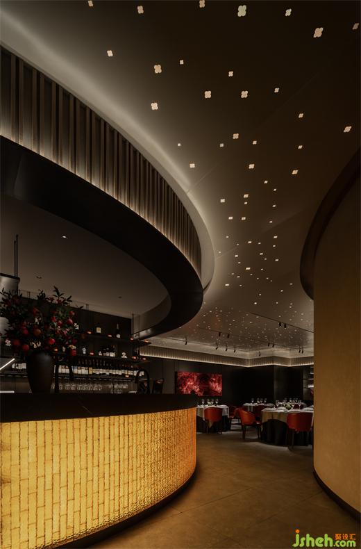 本案位于上海靜安嘉里中心,在這個充滿美學的餐廳空間里,設計師巧妙地融入了柿花的形態(tài),讓整個空間充滿了多樣性和煙火氣。無論是宴會區(qū)、水吧區(qū)、卡座區(qū)還是包廂,都彌漫著柿花的獨特魅力,讓人們在享受美食的同時,也能感受到自然與藝術的完美結合。