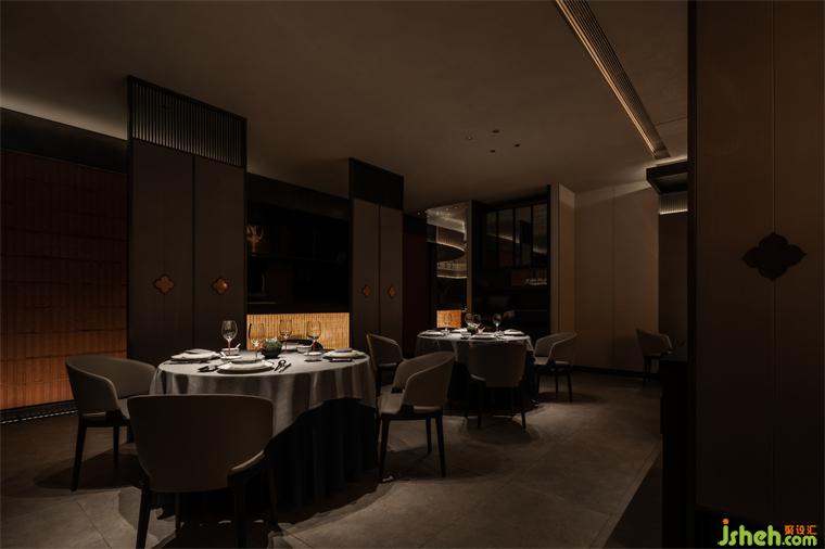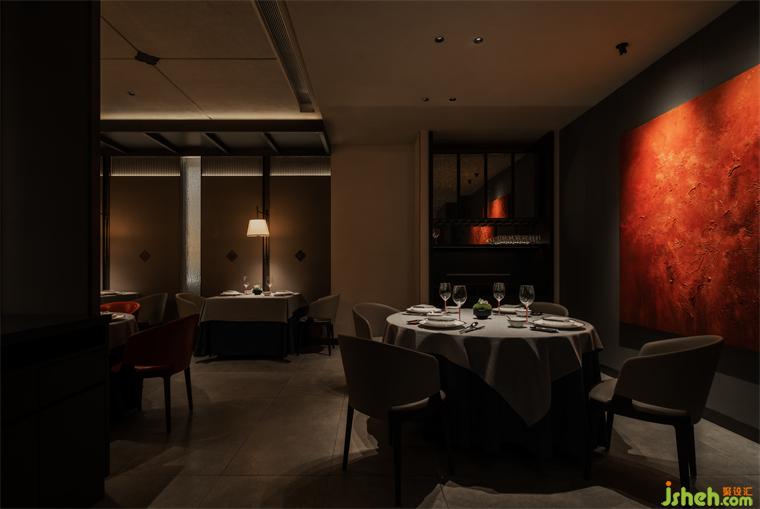 空間內部因著原有建筑格局,餐廳設計師在規(guī)劃上順應原有建筑曲線,豐富行走動線的趣味性,讓空間自然過渡。