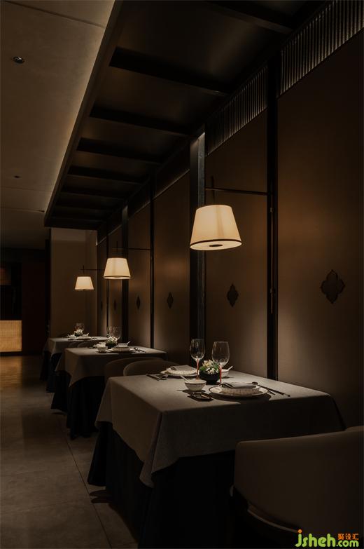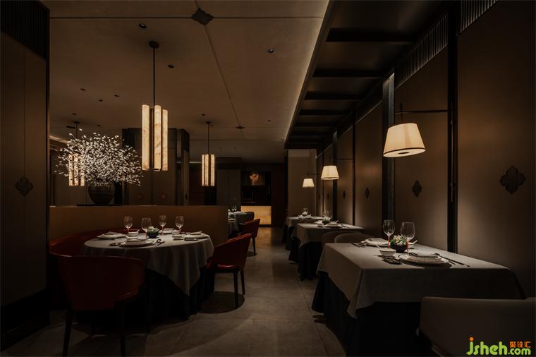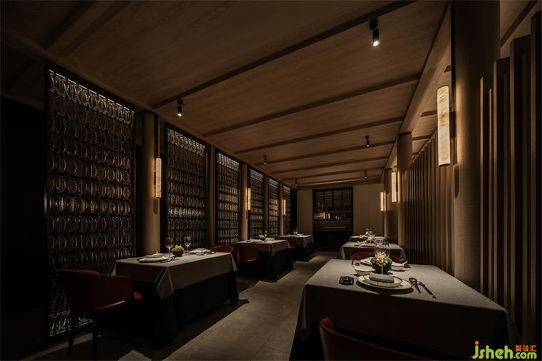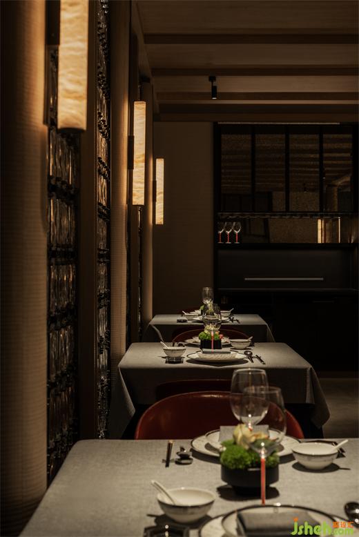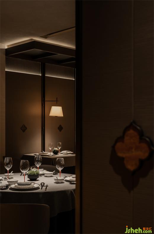 餐廳設(shè)計(jì)延續(xù)京味文化的對(duì)稱性,舒適的半圍合卡座區(qū)域,靜謐的燈光氛圍,讓食客們可以在其中小酌,也可以肆意大醉,一切顯得那么愜意。