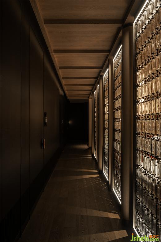 餐廳設(shè)計(jì)空間吧臺(tái)區(qū)利用橘色燈光的玻璃磚和格柵下幽暗的燈光碰撞,弱化整體空間分離感,同時(shí)又透露著神秘感,激發(fā)食客探索的好奇之心。