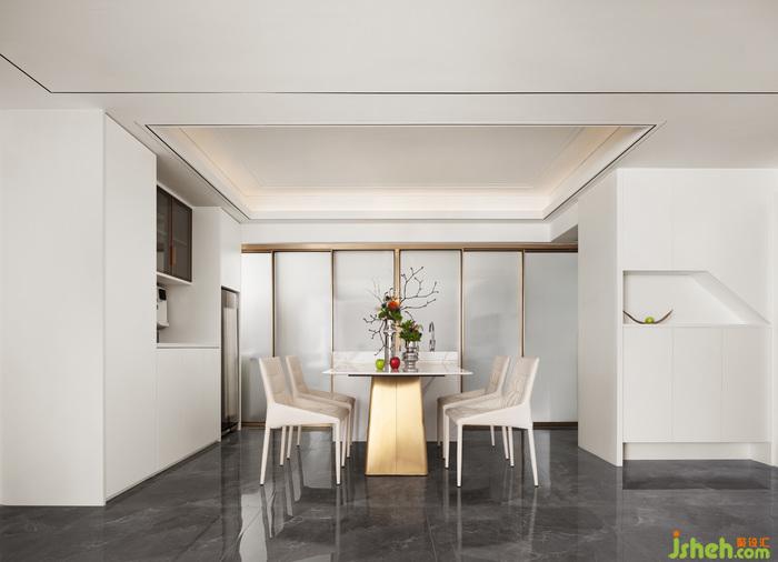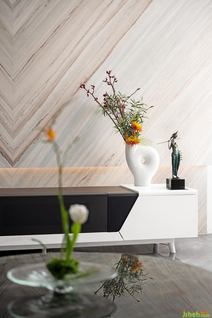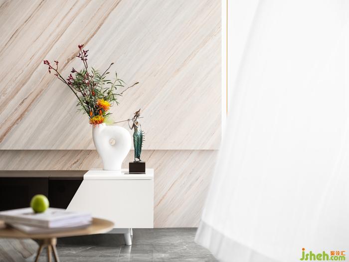 The colour of low saturation lets a space invisible magnify, of a bit of leine blue disorderly enter, bring "water drop billows" move feeling. Contemporary sculpture and flower arrangement are used to express the mood of space. Through the capture of light and shadow, the creation of natural atmosphere and mutual infiltration of art and aesthetics, the estrangement and boundary sense of space are eliminated, and the charm of gentle, quiet and peaceful space is endowed.