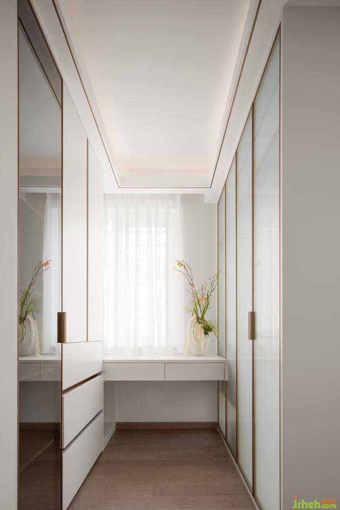 而作為最為私密的主臥室,語堂空間設(shè)計(jì)顯然要考慮更多,對感官層面的需求、對情調(diào)的熱愛、對時(shí)尚的喜好、品質(zhì)與藝術(shù)等,這一切構(gòu)成了現(xiàn)代人的生活態(tài)度。臥室采用低飽和度的色彩,沒有鮮艷跳脫的色彩出現(xiàn),散發(fā)安寧恬靜的氣息,瞬間營造輕松的睡眠空間。