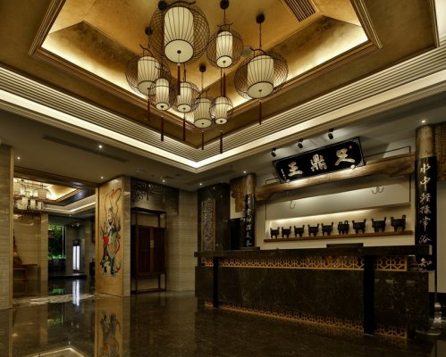 主要材質(zhì):木地板、木飾面、不銹鋼、灰色大理石、雕花板、咖色墻布、鏡面