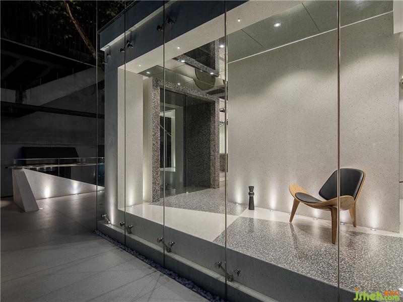 The project changed the direction of the first floor gate. The original door was changed into a glass curtain wall window, a simple and avant-garde grey terrazzo space, which was used to display the company image of the fashion industry and display the latest design works.