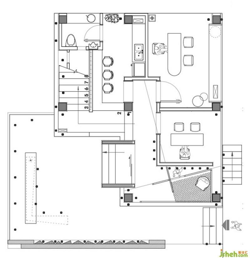 值得一提的是,超比例樓梯原本是一座位于戶外的鐵藝樓梯,既不美觀,也不方便上下樓,下雨天更是讓整個辦公室陷入苦惱。辦公室設(shè)計