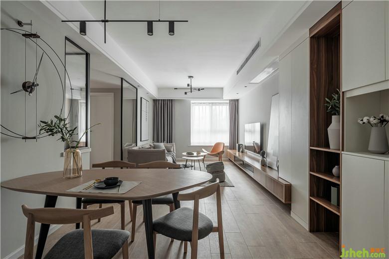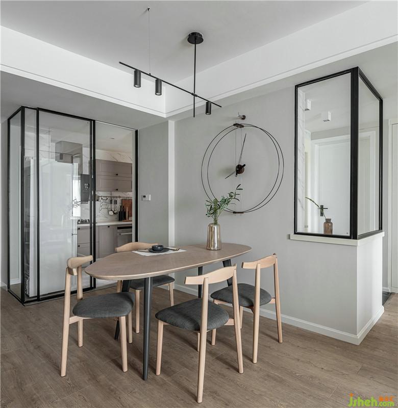 原有廚房墻體取而代之為一扇入戶大鏡面與兩扇通頂玻璃移門,改變原來餐廳與廚房動向的同時,空間通風(fēng)與采光效果大大提高,廚房或半開放或獨(dú)立,賦予生活場景更多畫面,餐桌選用不規(guī)則多邊形,既能體現(xiàn)業(yè)主的居住品位,也讓空間與眾不同,充滿更多趣味。家居裝修