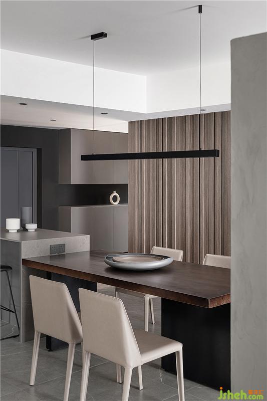 原始餐廳空間使用過于封閉且獨立,設計對整個空間進行重新的功能重組,優(yōu)化廚房。增設島臺餐桌一體式設計,打造會客室餐廚空間,讓餐廳與廚房、與客廳、與書房形成動線視覺聯(lián)動,豐富空間場景,提高空間利用率,讓家有更多可能......