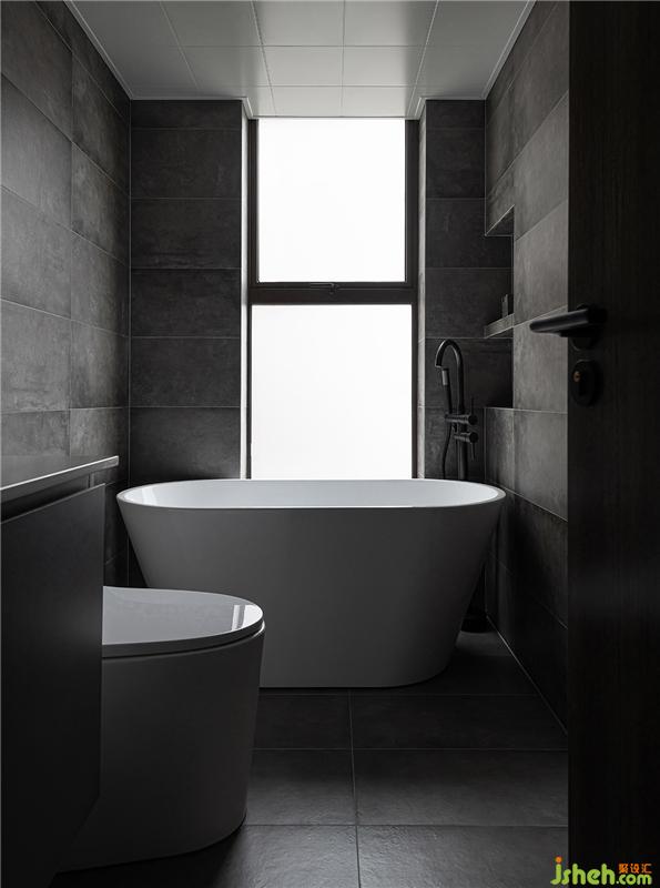 衛(wèi)生間設(shè)計啞光水泥磚和白色潔具的搭配,形成材質(zhì)反差,營造高級感。