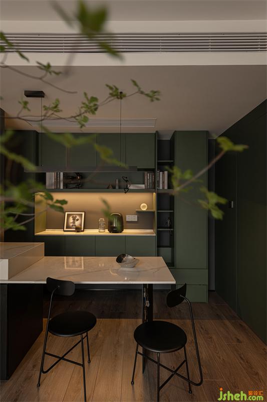 3.豐富空間中的功能板塊,以大宅功能的思維,設(shè)計出中西廚、島臺操作區(qū);