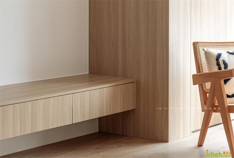 柜門與墻頂面木質(zhì)墻板形成統(tǒng)一