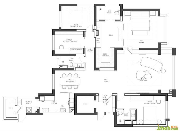 5.優(yōu)化主臥及衛(wèi)生間功能區(qū)動(dòng)線,豐富空間的交流從而創(chuàng)造更多生活場(chǎng)景。