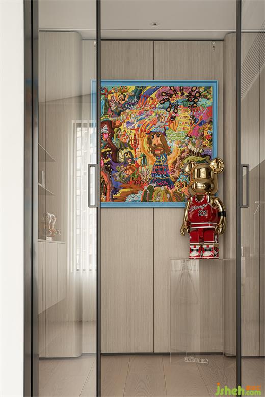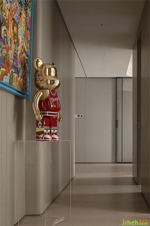 走廊內(nèi)退墻體,讓人的視覺(jué)被聚中,較長(zhǎng)的走廊空間好像變成了藝術(shù)展館,豪宅設(shè)計(jì)將愛(ài)好填入生活的場(chǎng)景,融入現(xiàn)代時(shí)尚的格調(diào),展現(xiàn)居住者的生活色彩。