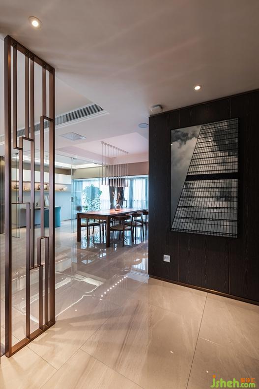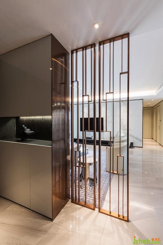 門廳的銅色金屬屏風(fēng),
