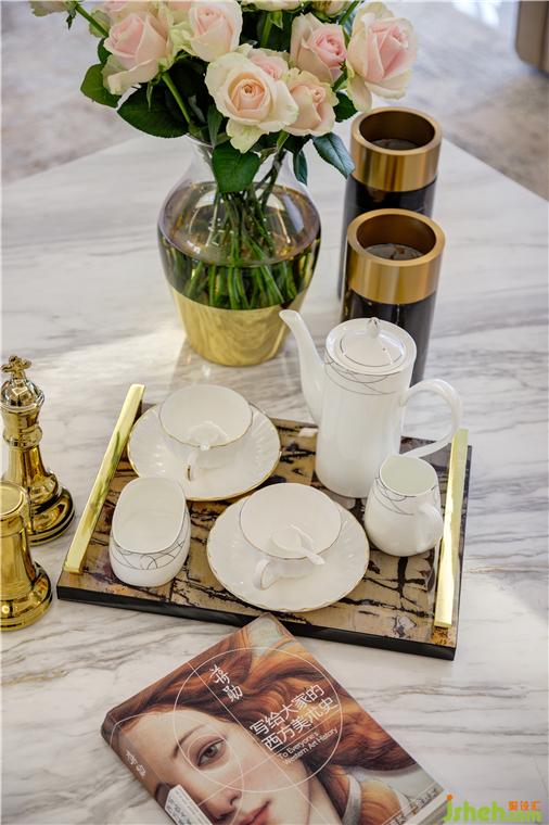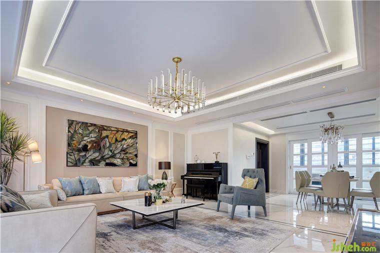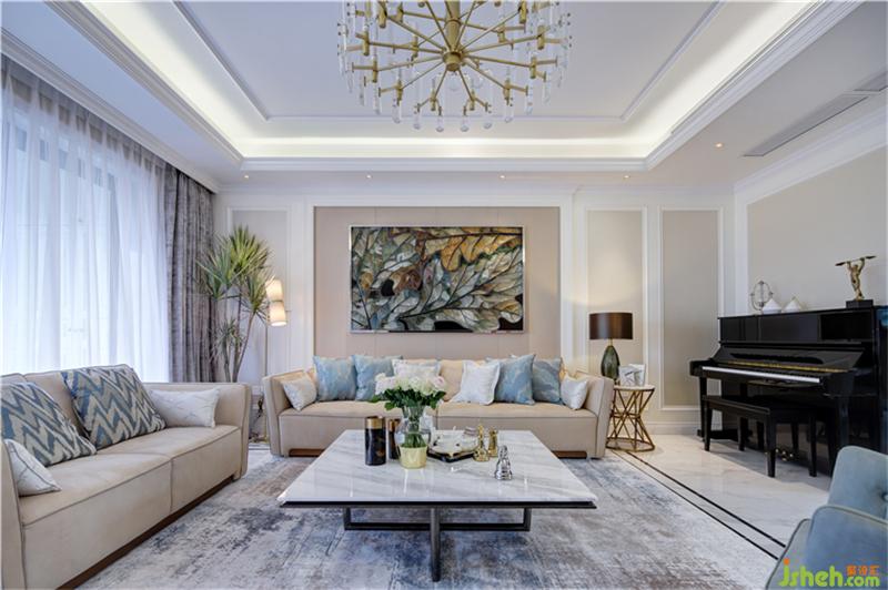 大面積清新的白、搭配淺灰藍地毯和裝飾畫牽引出歐式輕奢浪漫情韻,奠定客廳優(yōu)雅溫馨的基調(diào)。以淺色為主色調(diào),用少許亮色進行點綴。使空間在和諧統(tǒng)一的基礎(chǔ)上更具視覺層次感,為空間平添幾許溫度與生機。歐式輕奢風(fēng)格往往會添加簡潔曲線家私結(jié)合方正矩形及幾何框架的造型,使整個設(shè)計變得剛中有柔、恰得好處。用簡約淡雅的裝飾突出品味,提升空間的藝術(shù)感,創(chuàng)造出輕奢化的歐式浪漫。水晶吊燈灑下華麗的光影,布藝沙發(fā)與石材茶幾剛?cè)岵蔑@典雅與時尚。少量的金屬色與淺色的空間色彩,優(yōu)雅里突顯了小小的浪漫。一些精致的花藝、茶具、無意間使整個空間更為親切鮮活,細節(jié)中盡顯設(shè)計師的匠心美意。以簡約來突顯品質(zhì)感,整個空間縈繞優(yōu)雅沉穩(wěn)的氣息。窗外節(jié)奏如常,屋內(nèi)緩慢安寧,人生如一杯沒有加糖的咖啡,喝起來是苦澀,回味卻有久久不能退卻的余香。