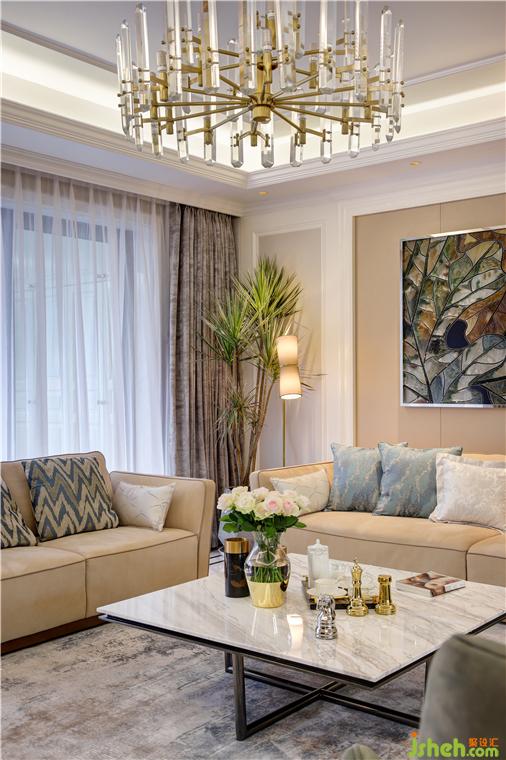 生活可以是柴米油鹽、也可以是一塵不染、灑脫自在的優(yōu)雅模樣。敞亮的客廳與餐廳相連結(jié), 融入優(yōu)雅、低調(diào)奢華的金屬色調(diào),大膽而活躍的搭配,餐廳與客廳相通,設(shè)計師用卡其色演繹輕奢之美,讓人們在優(yōu)雅的用餐時光里重溫歐式貴族情調(diào)。主人不凡的品位在空間中娓娓道來。精致的家具營造生活的格調(diào)。精心挑選的每樣家居飾品,體現(xiàn)了主人不凡的生活品味。沒有太多的家具裝飾,掛畫和燈具的光影營造了空間的浪漫與溫馨。細節(jié)中盡顯匠心美意。“輕”是一種優(yōu)雅態(tài)度,打造低調(diào)、舒適,卻無損高貴與雅致的生活。“奢”是一種小資情調(diào)、追求品質(zhì)、精致、卻不失平淡與樸素的狀態(tài)。客廳室內(nèi)設(shè)計