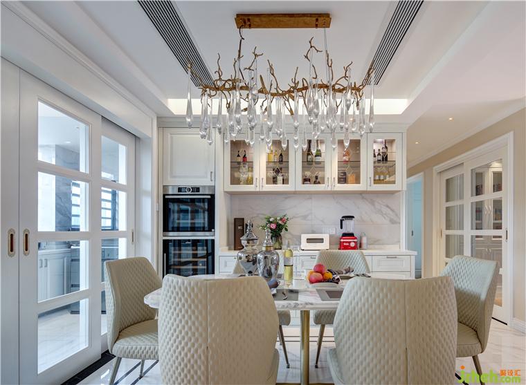 褪去繁復(fù),優(yōu)雅重生,用陣列對稱的陳設(shè)布局營造空間儀式感。讓空間引導(dǎo)生活,潛移默化。融入自然元素的陳設(shè)品,讓空間自然靈動。餐廳輕松浪漫的氛圍共聚溫馨的每?餐,白色搭配卡其色,盡現(xiàn)優(yōu)雅、極致??蛷d與餐廳的設(shè)計中,高貴的氣質(zhì)在白色與溫馨的灰米色的剎那占領(lǐng)整個空間,在溫潤如玉的質(zhì)感與盈透的色澤中,彰顯著無與倫比的誘惑魅力。讓身處其間的人,在妙曼的視覺感受之后,發(fā)現(xiàn)有某些元素能夠觸碰我們內(nèi)心的原點??臻g設(shè)計在材質(zhì)的鋪陳和搭配上表達了現(xiàn)代設(shè)計的特質(zhì),使得空間層次分明。到處彌漫著一種高雅氣息、藝術(shù)的光影斑駁,每一個節(jié)點似乎都在訴說著一個故事、 一個真正還原生活本質(zhì)的家。