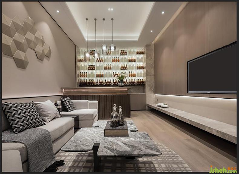 在沙發(fā)的選擇上依舊選擇了軟包款型,異形的造型使整個(gè)空間不顯拘謹(jǐn),更加休閑,達(dá)到一個(gè)放松舒適的環(huán)境,舉杯暢談。設(shè)計(jì)公司