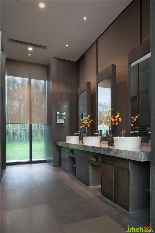 衛(wèi)生間的空間布置也是延續(xù)湖居特色的格調(diào)、引入東方特色藝術(shù)裝置畫及擺件以意境的營(yíng)造為主、深遠(yuǎn)而幽靜。