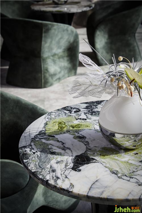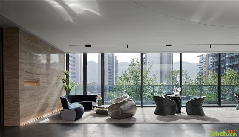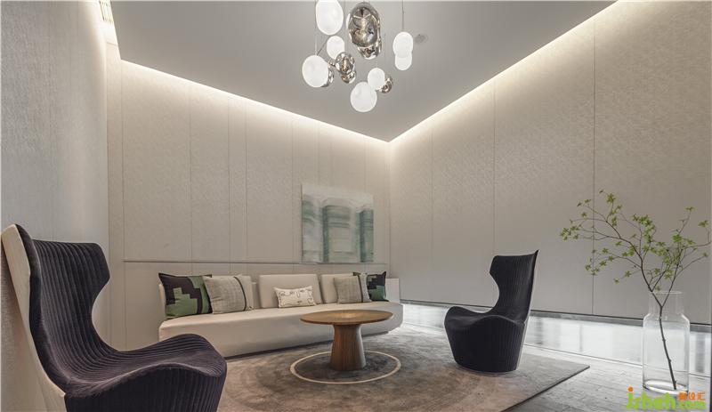 洽談區(qū)整個空間設計上追求與自然相融合。軟裝家具大量選用自建筑大師扎哈的設計作品,這也與扎哈一貫的設計理念相契合。