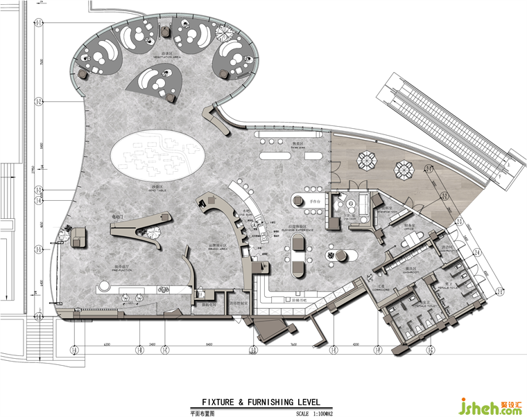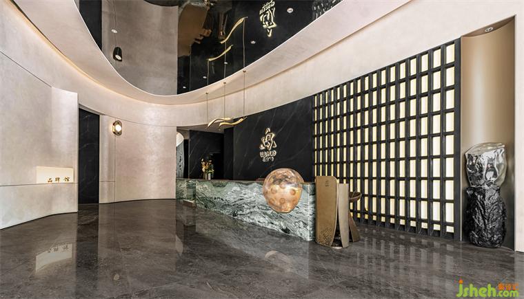 曲線在空間中的「運作」也同時帶來了化繁為簡的效果,勾勒出一個有著優(yōu)美框架的室內(nèi)空間,形成簡練、有序和極簡的視覺體驗??臻g整體淺色系的基調下,將現(xiàn)代感的金屬、石材和藝術玻璃的巧妙融合,保留了整體的寧靜情緒,在月形勾勒的空間韻律中展現(xiàn)靜中有動的設計細節(jié),營造空間中適度的未來感。同時墻面的發(fā)光板上表達當下的“彈幕”文化,這里我們將貴陽在地的煙火氣釋放出來,與時下年輕人的生活形成情緒上的共鳴。