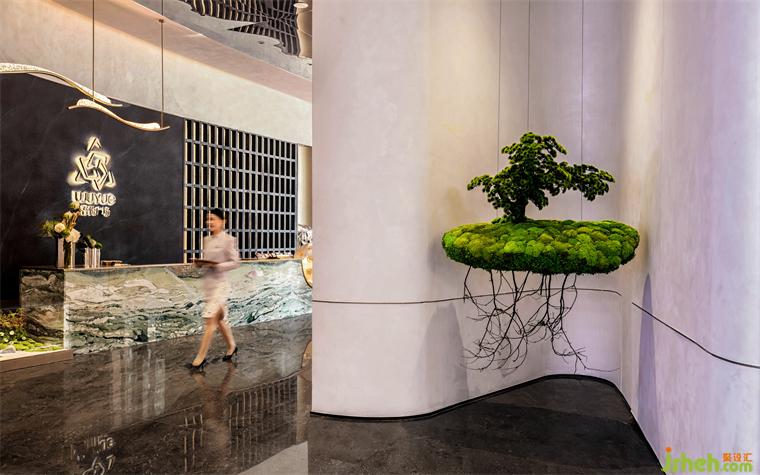 前廳的過渡空間中,懸浮的綠植近一步去營造獨特的視覺體驗。
