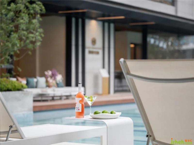 環(huán)繞水畔客廳布置親水平臺(tái)、休閑躺椅區(qū)、趣味互動(dòng)水景區(qū),聯(lián)動(dòng)架空層泳池配套區(qū)形成開(kāi)放包容水畔客廳。色彩遵循極簡(jiǎn)明快的搭配理念,賦予空間生活場(chǎng)域感與度假活力。