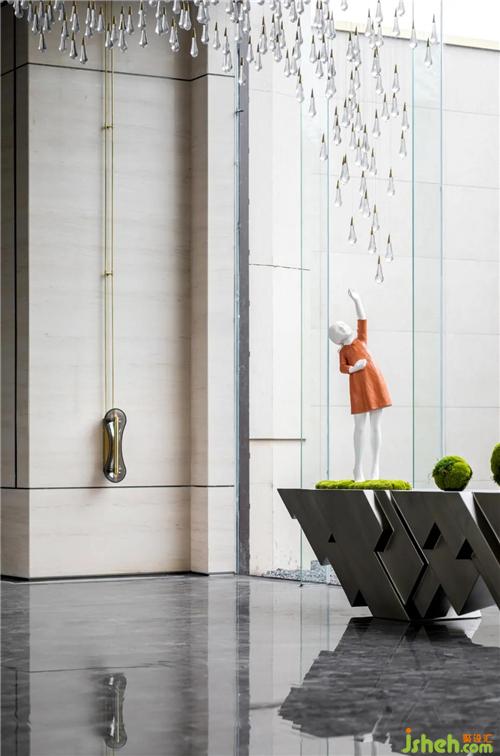低奢的水晶吊飾彰顯了都市人群的品質(zhì)追求,蜿蜒的律動(dòng)如同夜幕降臨后的繁華都市,在地面形成不同光影,折射生活的動(dòng)與靜,為觀者畫(huà)下品質(zhì)生活的品牌印象。