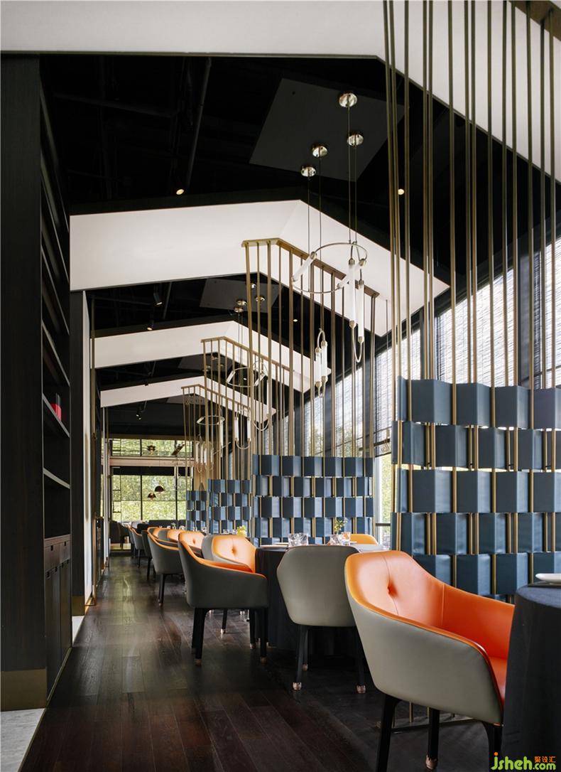 空間多樣化對保持設(shè)計(jì)的整體性是一種考驗(yàn),因此,設(shè)計(jì)師提取東方美學(xué)元素并糅入自然態(tài)色彩進(jìn)行創(chuàng)作。餐廳設(shè)計(jì)