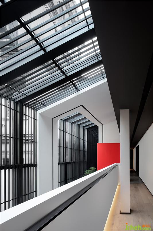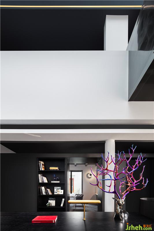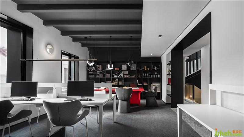 二樓為GID員工辦公區(qū),整體空間主要色調為黑白灰, 局部同樣運用了不同的顏色進行碰撞,構建別樣的東方氣韻。