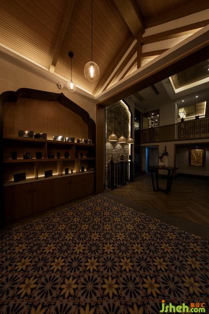 本案合理運(yùn)用燈光來(lái)塑造空間氛圍,光影的呈現(xiàn)、光束的排列,看似若隱若現(xiàn),縱橫交錯(cuò),卻又渾然一體的融于空間,提升了氛圍。