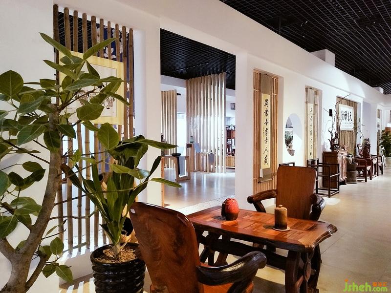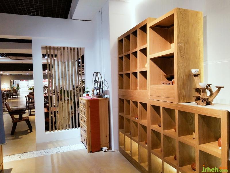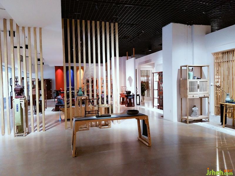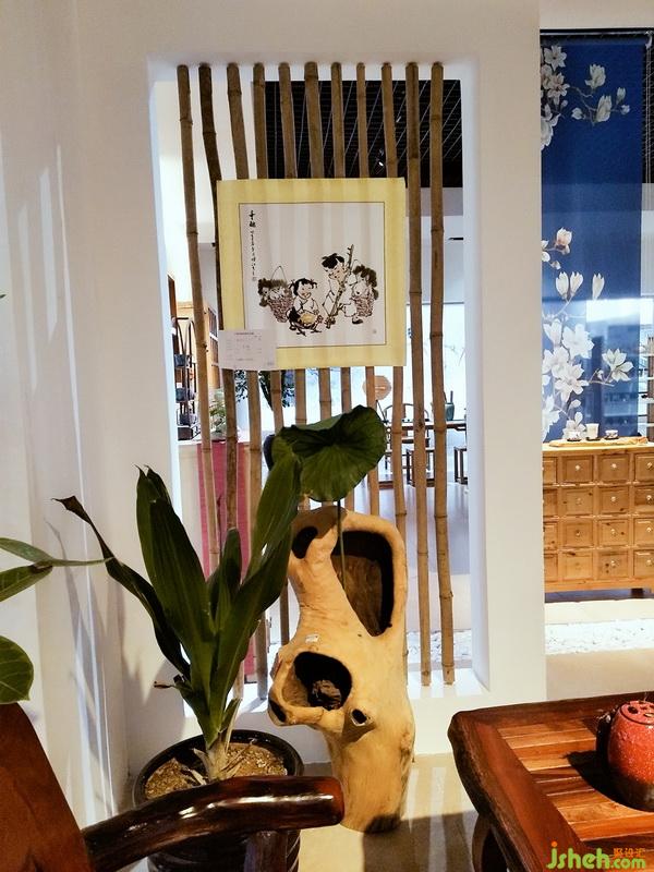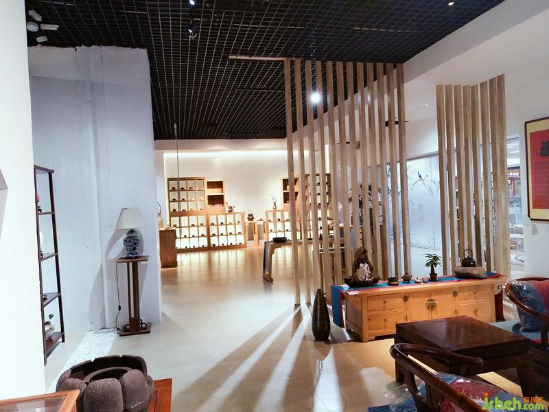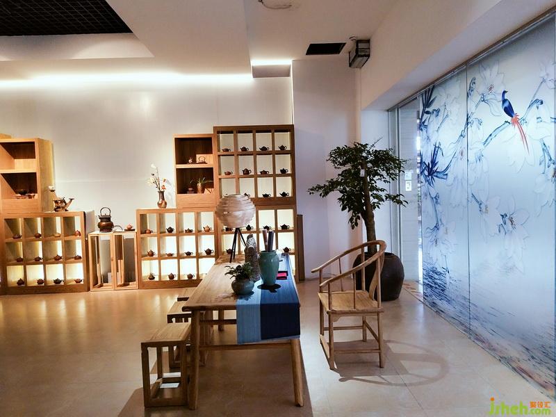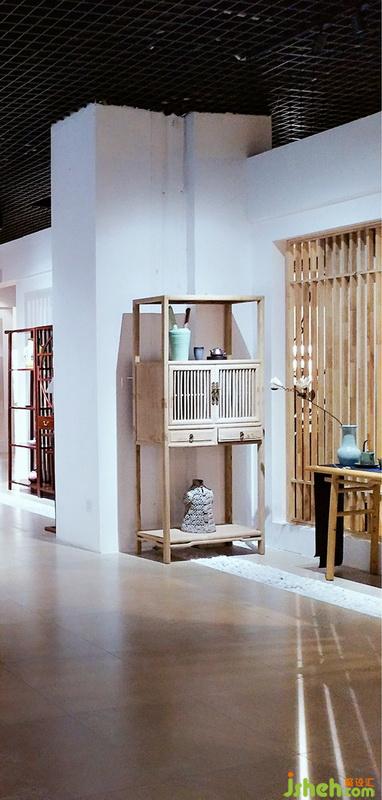 空間區(qū)域劃分為開敞式家具展示區(qū)、相對封閉的體驗式茶藝區(qū)和茶具展示區(qū),區(qū)域分割以鏤空隔斷為主,隔而不斷,相互連接,體現(xiàn)靜怡、謙和氣質(zhì)。白石子優(yōu)雅,木格柵樸素,古人云: “寧可食無肉、不可居無竹”,竹子配以禪意風格裝飾畫、白墻,給人帶來一片安逸與禪意。