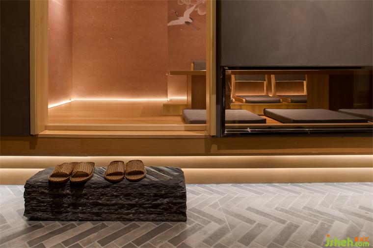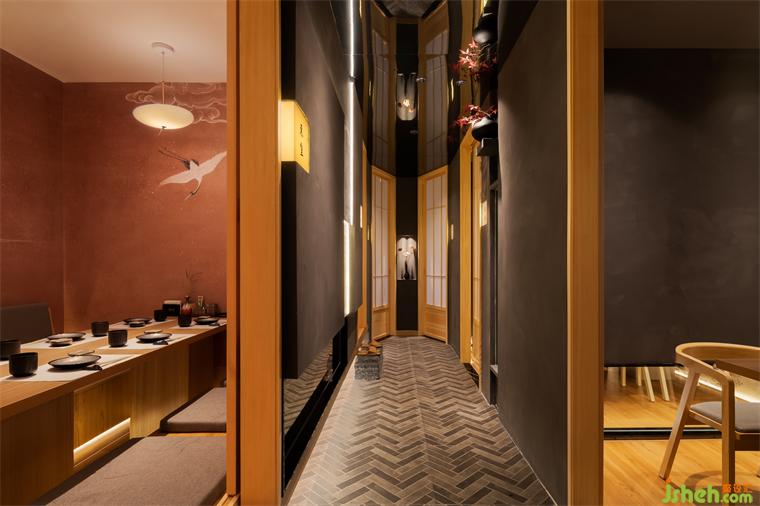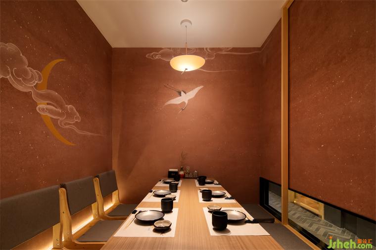 浮云如砂細(xì),半星燈火漏幽微。走進(jìn)包廂,日式傳統(tǒng)的和室風(fēng)格映入眼簾,包廂墻體開設(shè)大小不一窗洞,從視覺上增加空間感。移門采用障子門,料理設(shè)計(jì)營造詫寂之美。包廂采用抽象的浮云形態(tài)吊燈,散發(fā)柔和的燈光,亮如細(xì)砂,通過窗洞而出成半星微光,溫馨恬靜。