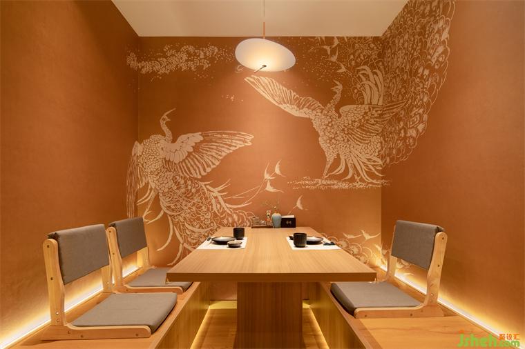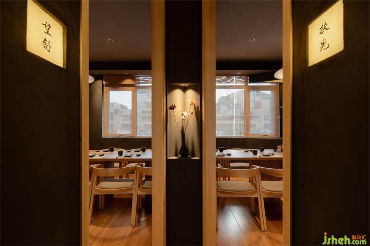 日又名扶光,月又稱望舒,日月如流,交相輝映?!胺龉狻卑鼛c“望舒”包廂之間,料理設(shè)計(jì)師做了可拆卸的移門(mén),兩個(gè)包廂可合二為一,最大化利用空間。