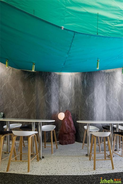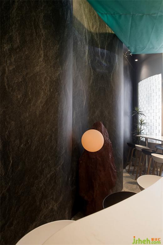 室內(nèi)明檔窗口除了應(yīng)有的品牌點菜燈箱,方便客人快速了解菜單以外,我們還設(shè)計了用以展示周邊產(chǎn)品的壁龕,壁龕以山的起伏為元素,上下呼應(yīng),錯落有致,十分有趣。