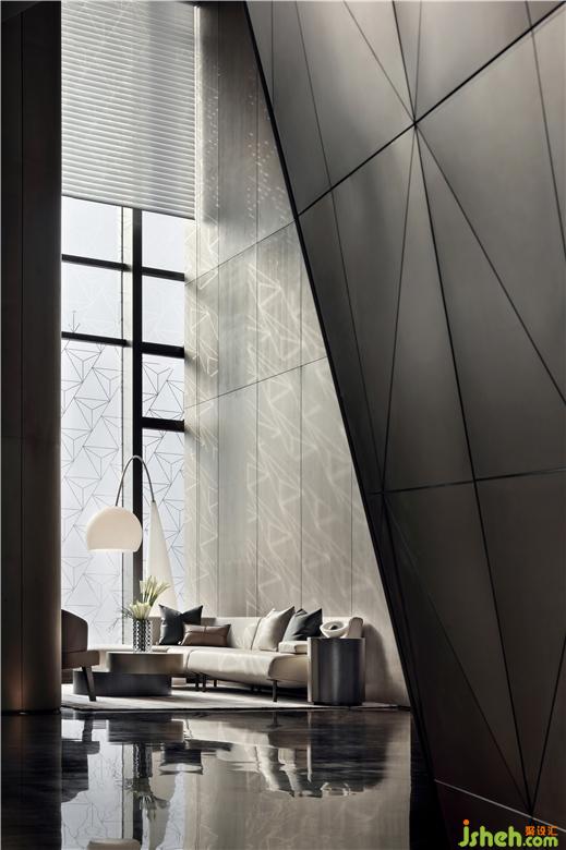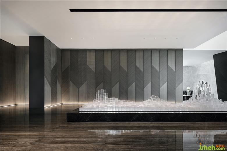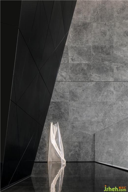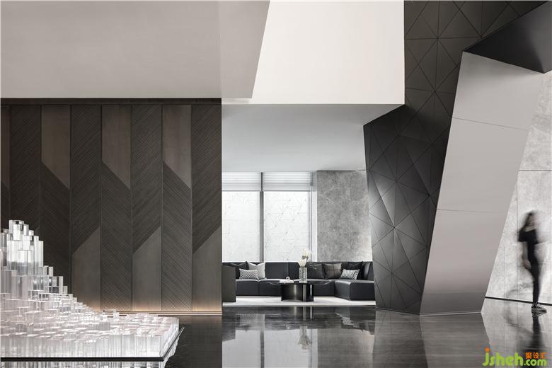 售樓處設計對空間與空間的過渡,“ 感覺”是貫穿始終的關鍵,利用金屬透光的效果,擺脫了沉悶感,創(chuàng)造出低調靜謐的效果,使光影的玩味與周邊環(huán)境的融洽與平衡。