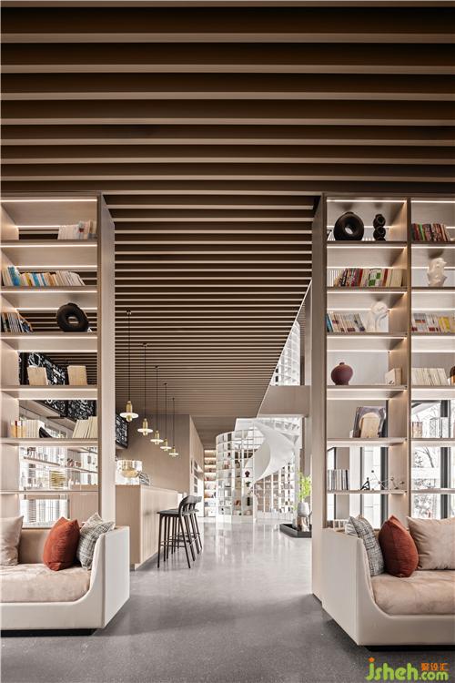 摒棄過于復(fù)雜的肌理和裝飾,簡化線條,純粹的閱讀空間干凈而不失趣味,文創(chuàng)店鋪設(shè)計喚起人和書之間的精神共鳴。
