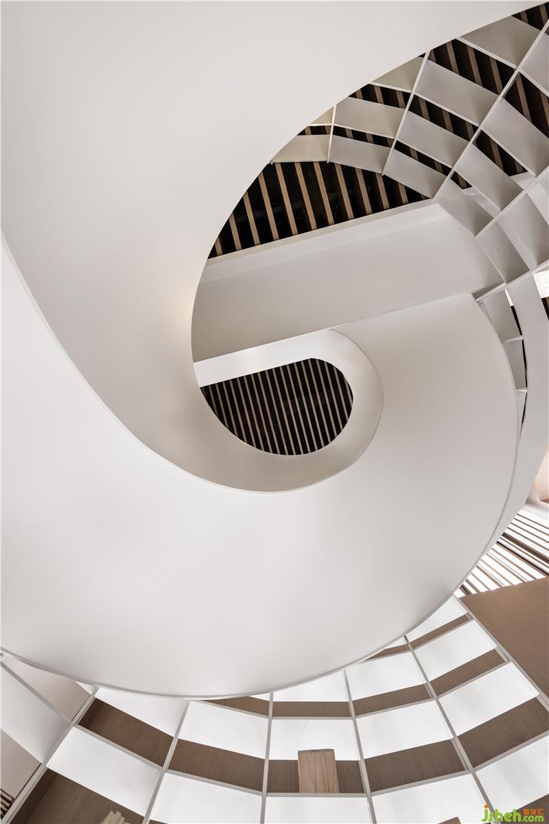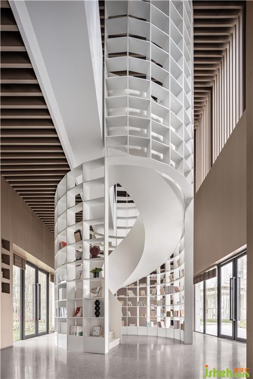 書架造型呈現(xiàn)濃厚書卷氣,藝術(shù)樓梯結(jié)構(gòu)棱角分明,文創(chuàng)店鋪設(shè)計連接上下兩層,使空間更具延伸與通透感。