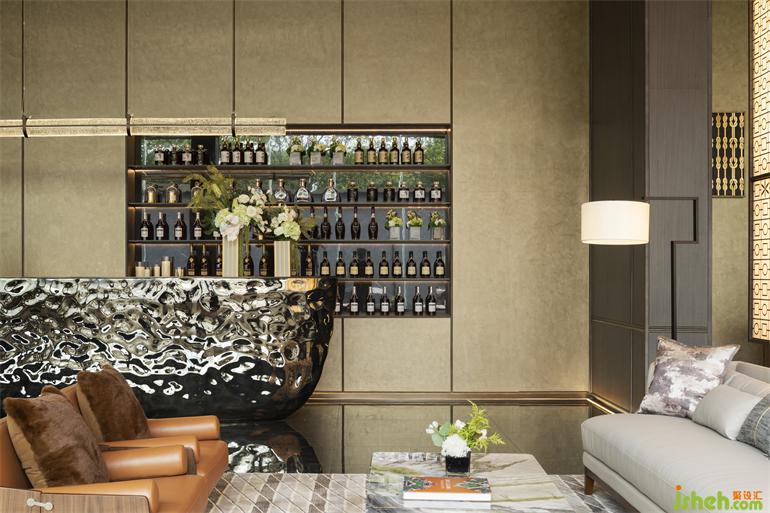 吧臺金屬紋理飽滿,明暗不一,與窗外的都市美景,掩映出亦幻亦真的質(zhì)感。在溫暖光暈之下……這一切都令人進(jìn)一步參透哲學(xué)中那份清幽避世的深意。
