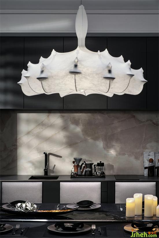 廚房的定制款玫瑰島移門可為客餐廳創(chuàng)造出更多的區(qū)域劃分,南京樣板房設(shè)計為都市精英的生活方式解鎖更多便捷,搭配與愛米默、嘉格納或相同檔次的頂級國際品牌,打造出城市煙火氣的溫馨廚房。