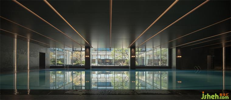 深邃的池水如鏡,倒映著雅致的景致,墻頂一體的啞光鋁板裝飾墻為這片寧靜的空間增添了幾分私密與尊貴。在柔和的燈光與交織下,感受水流的輕撫,遠(yuǎn)離塵囂。