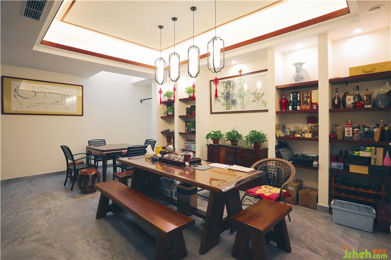 在空間布局上大開大合,整個動線明朗有序,采用一步一景,步移景生的表達手法,引人入勝,漸入佳境。在和屋主做深入交流后,避開常規(guī)中式的明清花格,明清家具,在空間在細節(jié)上的處理盡可能的干凈利索,方方正正,盡可能的簡化掉過多的渲染,而用干凈的面與線來詮釋。