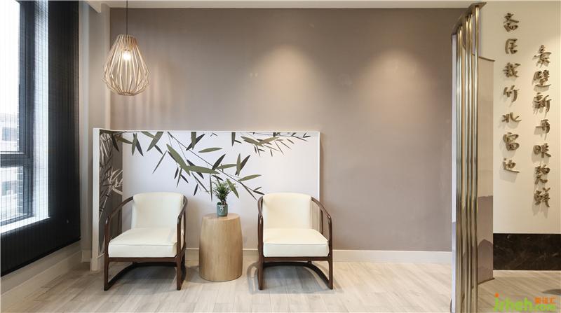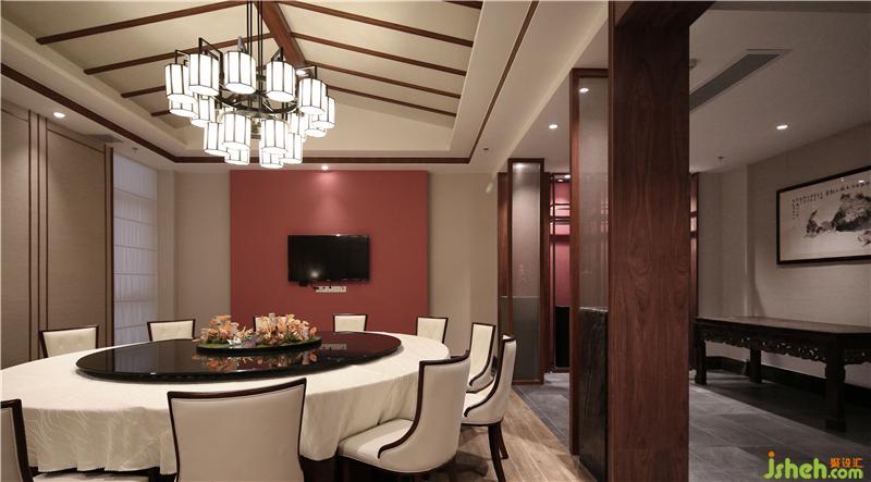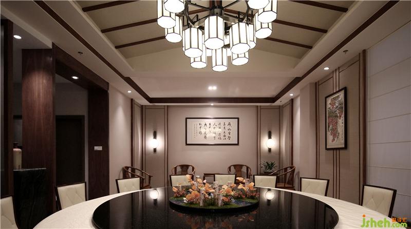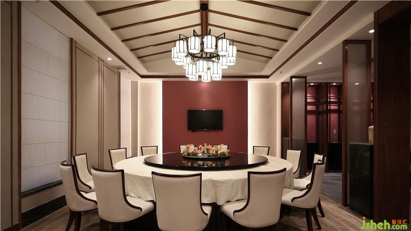 餐廳設(shè)計(jì)師以清雅的竹子林作為空間主題,竹子透過(guò)水紋玻璃,達(dá)到了竹影婆娑的感受,配合上餐飲區(qū)周?chē)詧A弧造型屏風(fēng)配合鷺鳥(niǎo)造型點(diǎn)綴圍繞,并以抽象富有意境的山水畫(huà)背景墻身的襯托下,來(lái)賓身臨其境,休閑雅致。