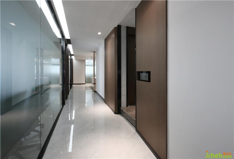 把開(kāi)放式辦公區(qū)融入走廊中,擴(kuò)大了視覺(jué)延伸。而辦公區(qū)域過(guò)道在色調(diào)上融為一體,讓辦公空間更顯寬敞。