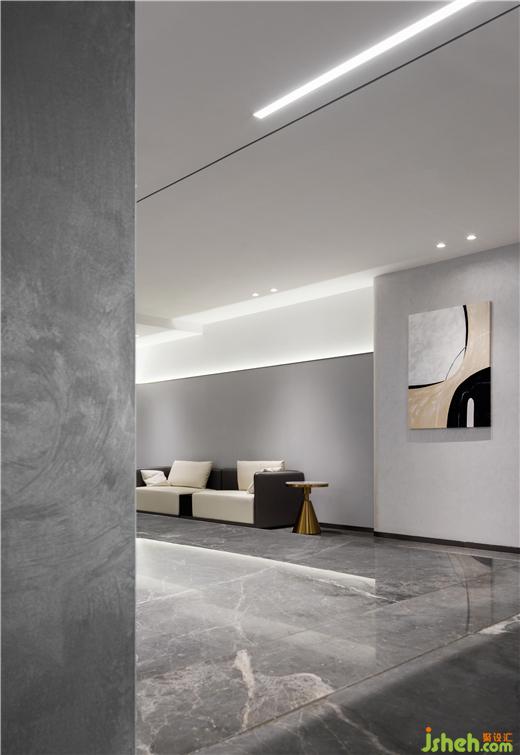 流動(dòng)的空間延續(xù)著藍(lán)白灰調(diào)色彩,