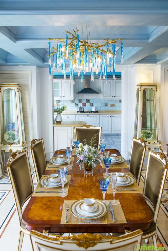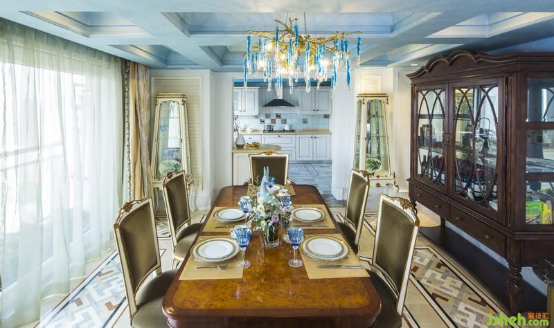 餐廳的風(fēng)格和整個家的設(shè)計(jì)相得益彰,古典的餐桌椅帶著復(fù)古的精致,歐式吊燈閃耀著光華與溫暖,每個裝飾細(xì)節(jié)都賦予空間低調(diào)的奢華質(zhì)感。
