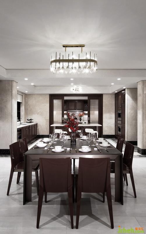 烹飪區(qū)的構(gòu)建,既體現(xiàn)了西餐廚房的浪漫精致,又保證了中餐廚房的寬闊流暢,設(shè)計(jì)師利用細(xì)膩通透的白色石板、自然意境的原木櫥柜為統(tǒng)一主體;在燈飾、吧臺(tái)設(shè)計(jì)等細(xì)節(jié)方面做了區(qū)別設(shè)計(jì)。
