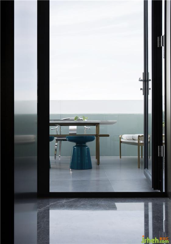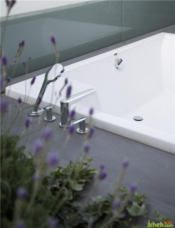 偌大的陽臺還隱藏著一個功能是泡澡區(qū),在磨砂玻璃的隱私保護(hù)下,能真正放松疲憊的身心。躺在浴缸內(nèi),望著天空,那無拘無束的感覺就是一幅人與自然完全融合的畫卷。室內(nèi)設(shè)計(jì)師